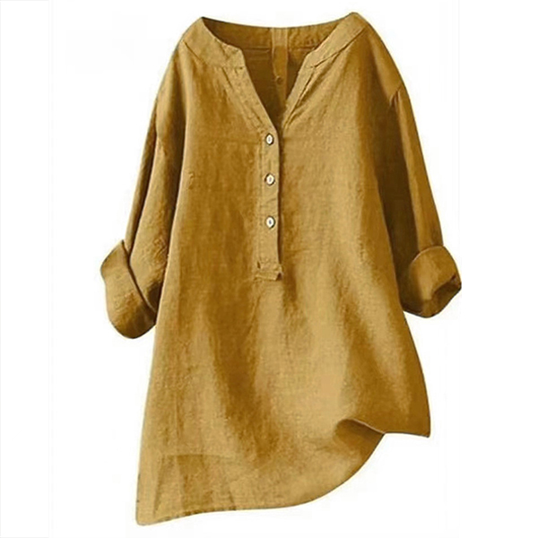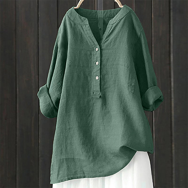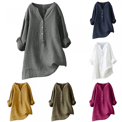 Tillverkad av mjukt och luftigt chiffongtyg, den här blusen kan erbjuda dig en långvarig komfort.Enfärgad stil, med långa ärmar ochV-ringad design, den här delen kan också behålla din stil.Så varför inte bli intresserad av det?