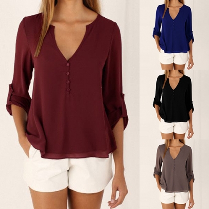 Hey,girls,how could you miss this stylish and all-match chiffon shirt? Solid color style,with long sleeve,