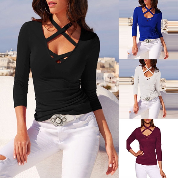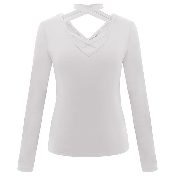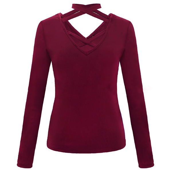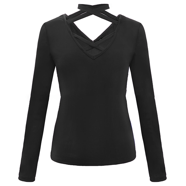 a solid color,the v-neck and crossover halter design are the highlights. Meanwhile,its clean and fit