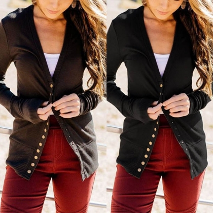 Solid color style,finished with long sleeve,v-neck and front buttons design,this cardigan also can