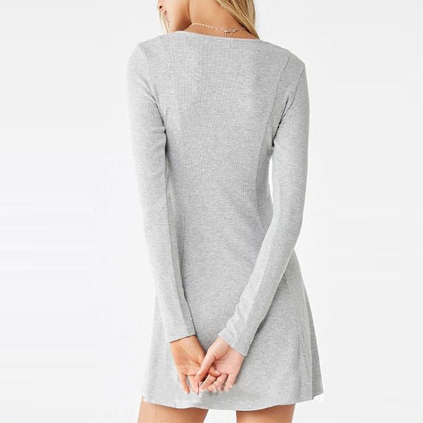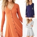 with this simple yet exquisite dress! Features a solid color,with long sleeve,v-neck and front-button design,