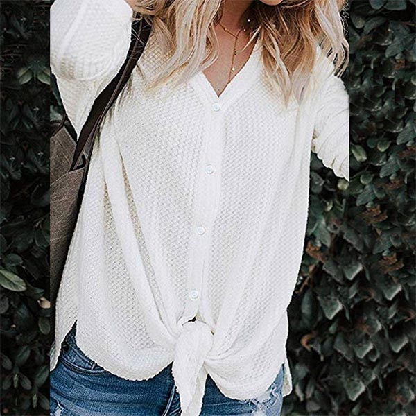 This knit top comes with a solid color,with long sleeve and v-neck design,which can offer you a