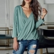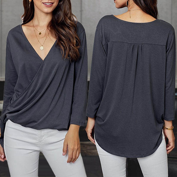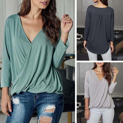 Boasts a solid color,finished with long sleeve,v-neck and high-low hem design,