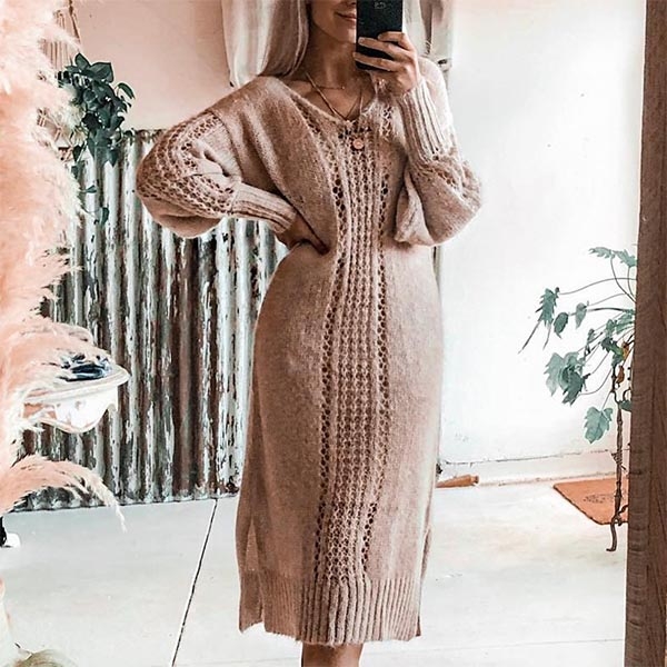 the v-neck,slit hem and hollow out details make this piece look so chic,sexy and attractive.