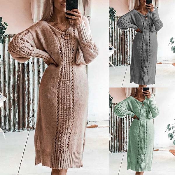 Give your wardrobe a seasonal update by adding this sweater dress. Solid color style,