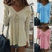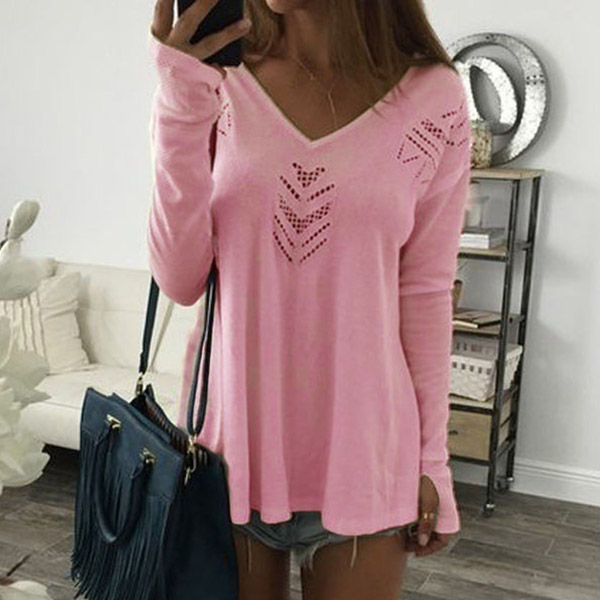 Crafted in a solid color,finished with long sleeve,v-neck and a loose silhouette,this t-shirt is your perfect