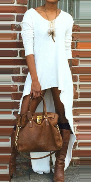 Solid color style,with long sleeve,v-neckline and irregular hem design,this dress is perfect