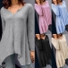 long sleeve,v-neck and an irregular hem,chic yet stylish. Simply matching with your tight pants for a