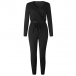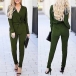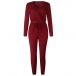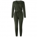 a solid color,finished with long sleeve,v-neck and high waist design,this piece not only