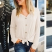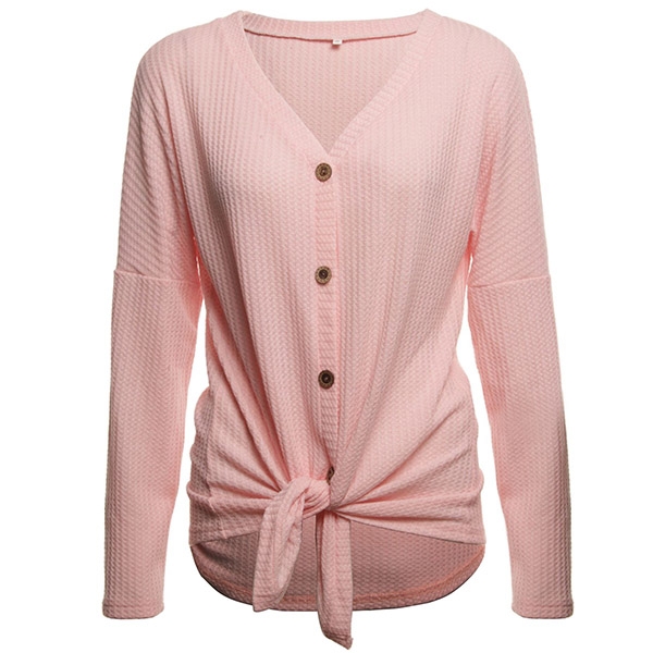 a place in your wardrobe. Boasts solid color,long sleeve,v-neck and front buttons design,this simple
