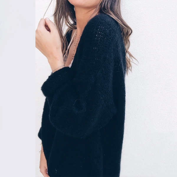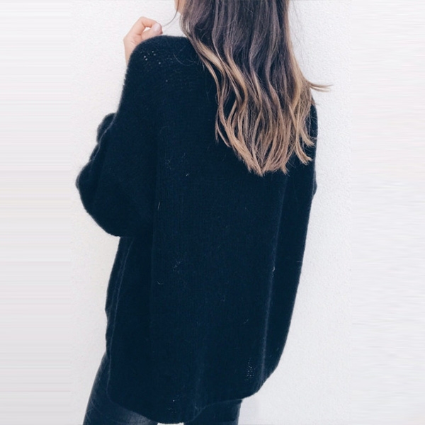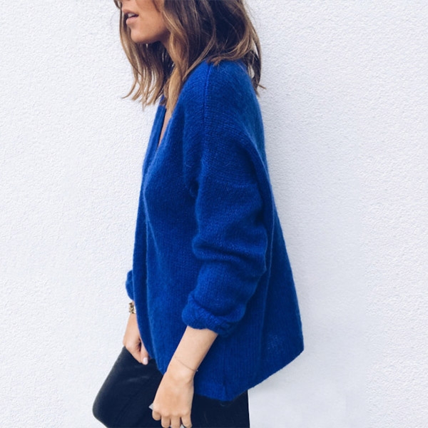 with solid color,long sleeve,v-neck and a loose silhouette,this knit cardigan can keep you warm as well as