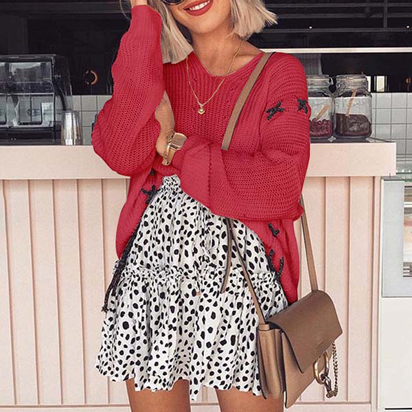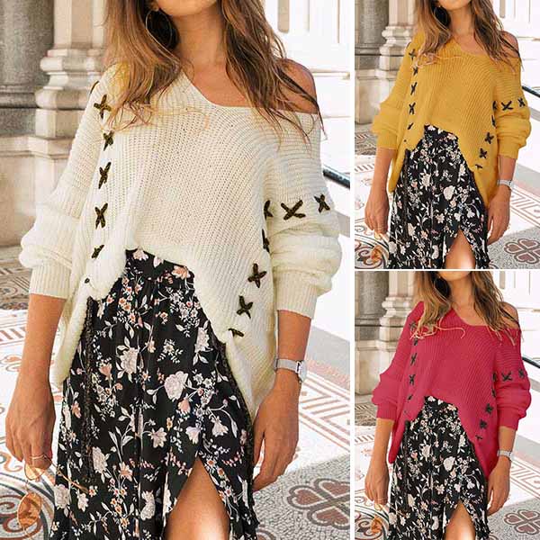 I promise you would be attracted by this chic and unique sweater. Solid color style,with long sleeve,v-neck and