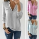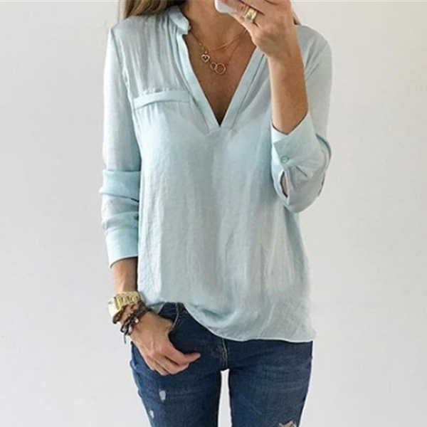 Finished with solid color,long sleeve and v-neck design,this blouse allows to be matched with different style