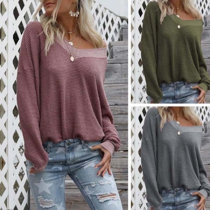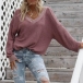 Boasts a solid color,with long sleeve,v-neck and a loose silhouette design,