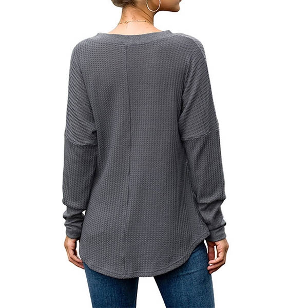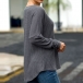 with long sleeve,v-neck and a loose silhouette design,this piece bears a simple design style,