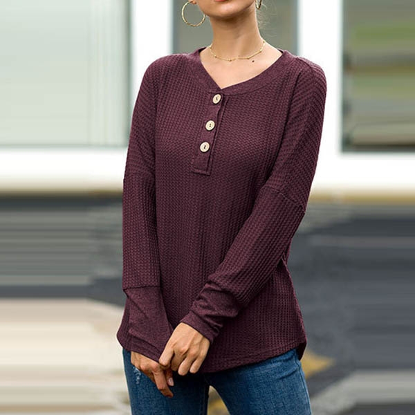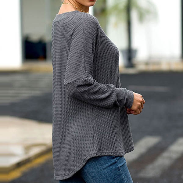 In these early autumn days,this long sleeve knit top would be a good choice. Solid color style,