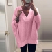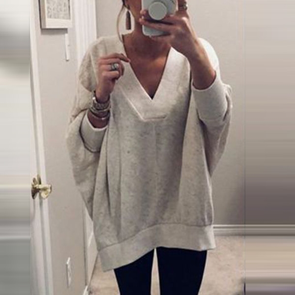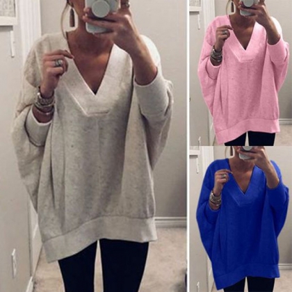 Comes with a solid color,with long sleeve,v-neck and a loose silhouette design,this piece can