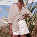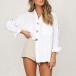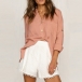 Fashion Solid Color Long Sleeve V-neck Loose Shirt