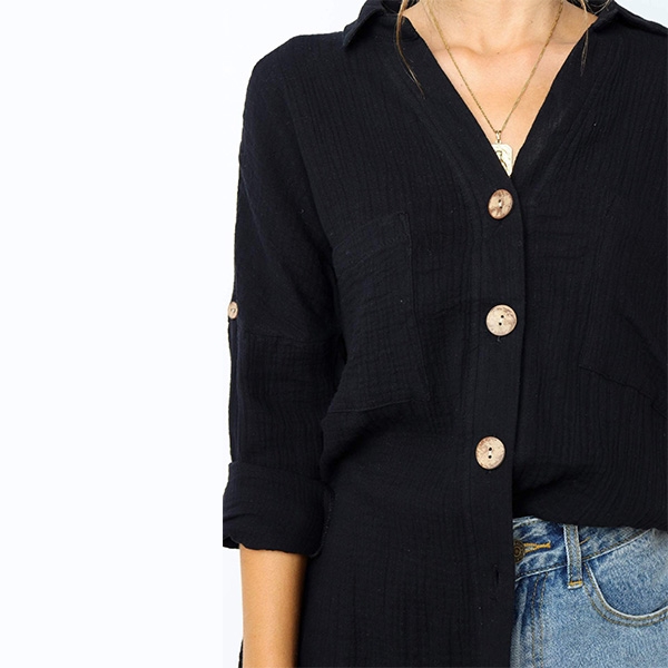 loose silhouette design. Comes with a solid color,finished with long sleeve and v-neck design,