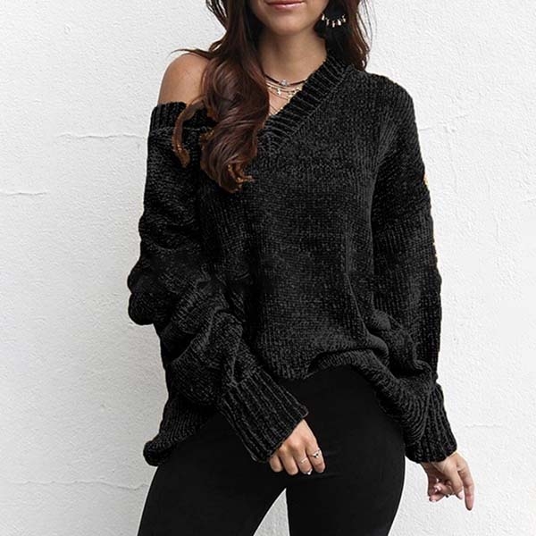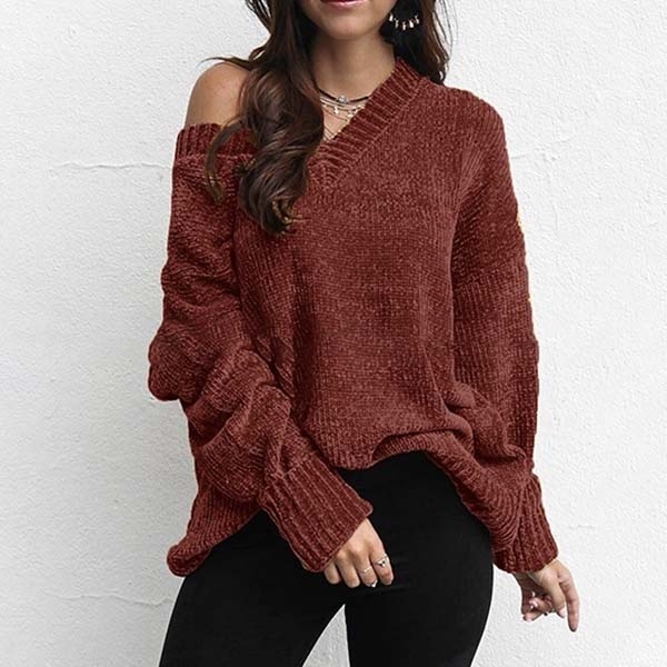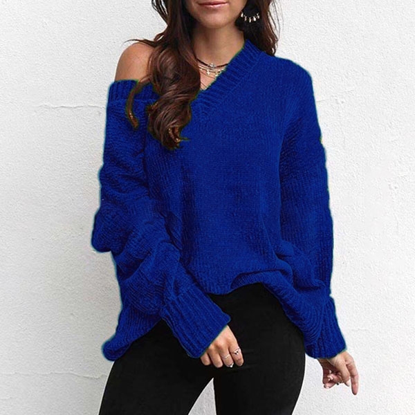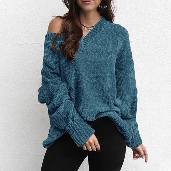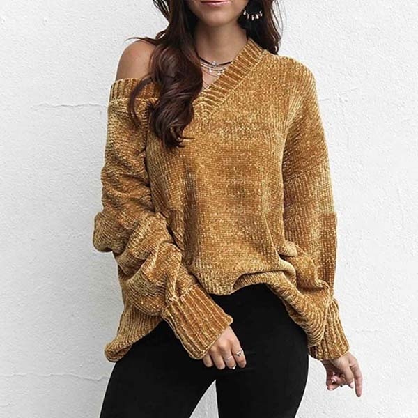 makes it look simple yet generous. Finished with long sleeve and v-neck design,the loose
