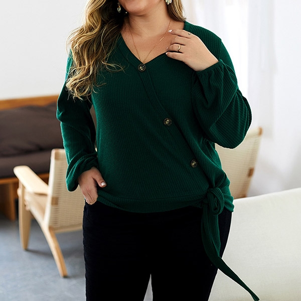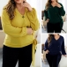 Fashion Solid Color Long Sleeve V-neck Oversized Plus-size Knit Top