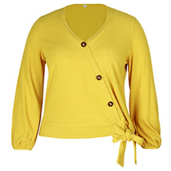 Solid color style,the v-neck and lace-up hem design make this piece look so chic and attractive.