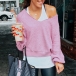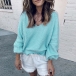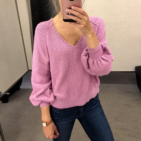 It is designed with solid color,long sleeve,v-neck and a loose silhouette,simple,cozy.