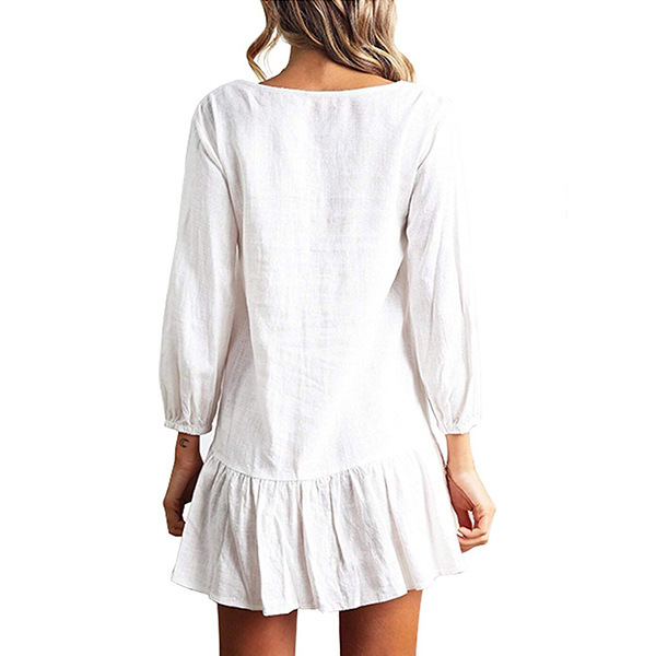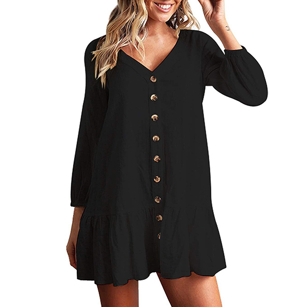 finished with long sleeve,v-neck and single-breasted design,this dress can promise you a comfortable