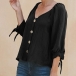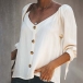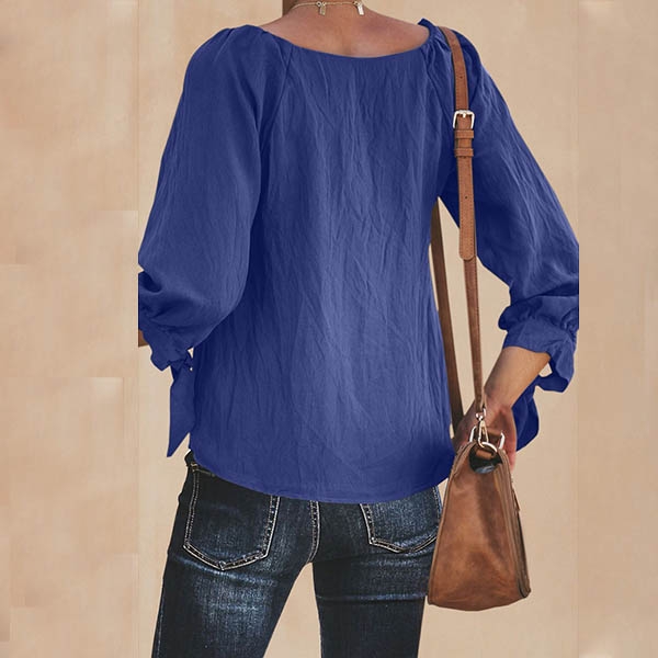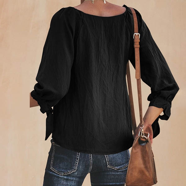 This top comes with a solid color,outfitted with long sleeve,v-neck and a relaxed-fit