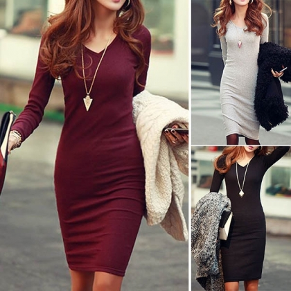 they offer! For example this sling dress. It is styled with solid color,long sleeve,v-neck and a fit silhouette,