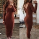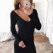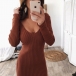 this dress in your team. Solid color style,with long sleeve,v-neck and a fit silhouette design,