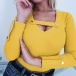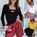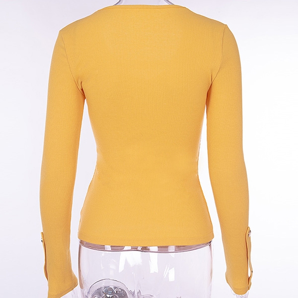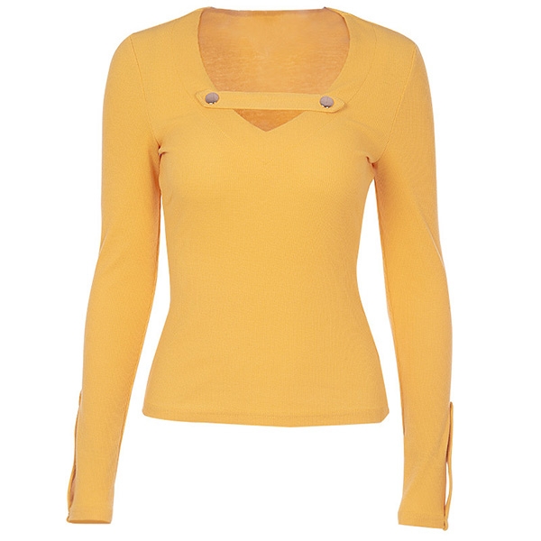 with solid color,long sleeve,v-neck and a fit silhouette,this t-shirt can be matched with different style bottoms