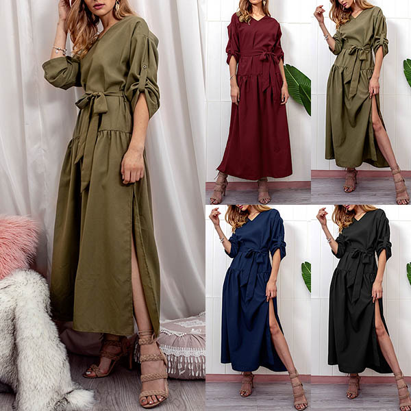 portray your elegant and charming image. Finished with solid color,long sleeve,v-neck and slit hem design,
