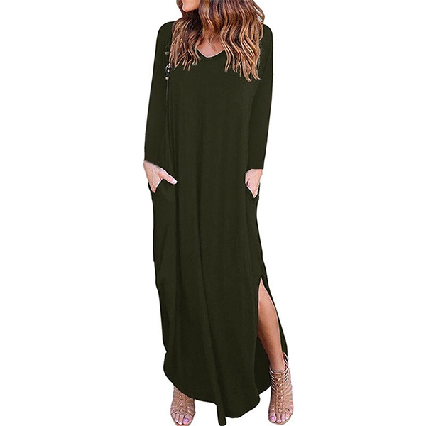 sight to draw some attention. Boasts a solid color,the v-neck and slit hem design make this