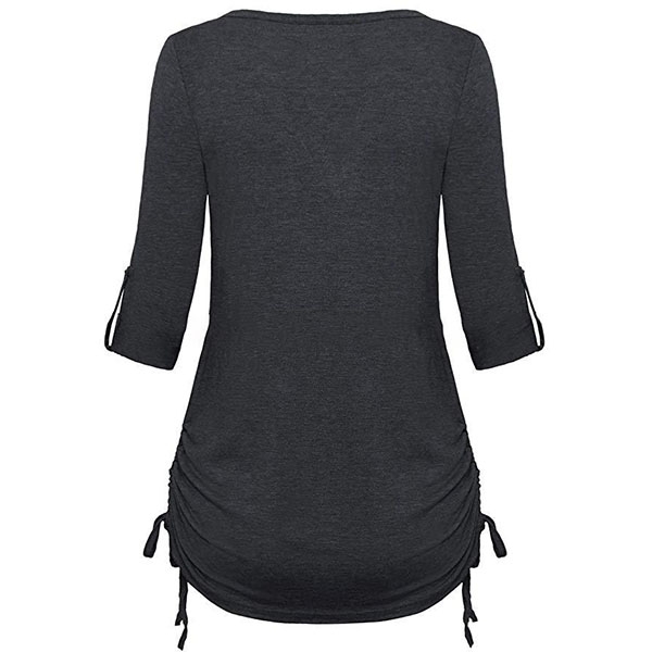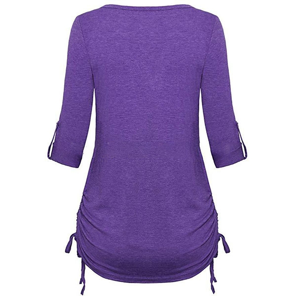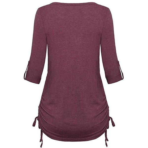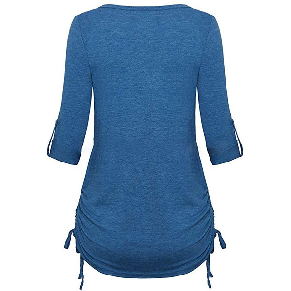 Fashion Solid Color Long Sleeve V-neck T-shirt