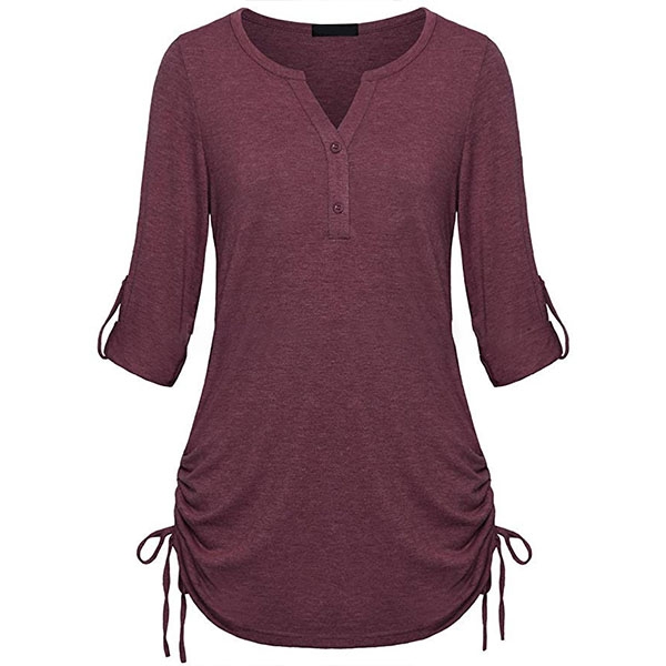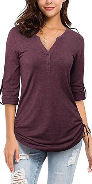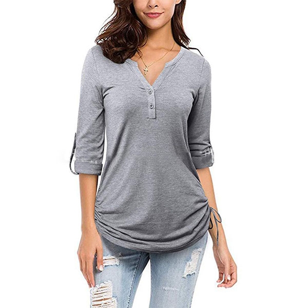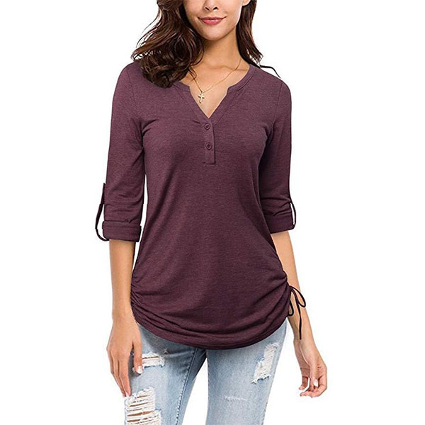 In the early autumn,this long sleeve t-shirt can easily strike your mind. Crafted from soft and breathable fabric,with long sleeve and v-neck design,this piece can ensure you a comfortable day. Different colors for your optional.