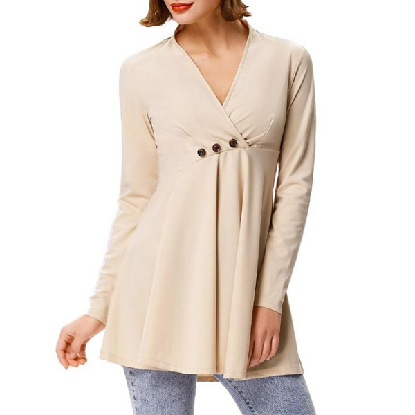 with long sleeve,v-neck and soft fabric,this piece can offer you a comfortable day. The front buttons