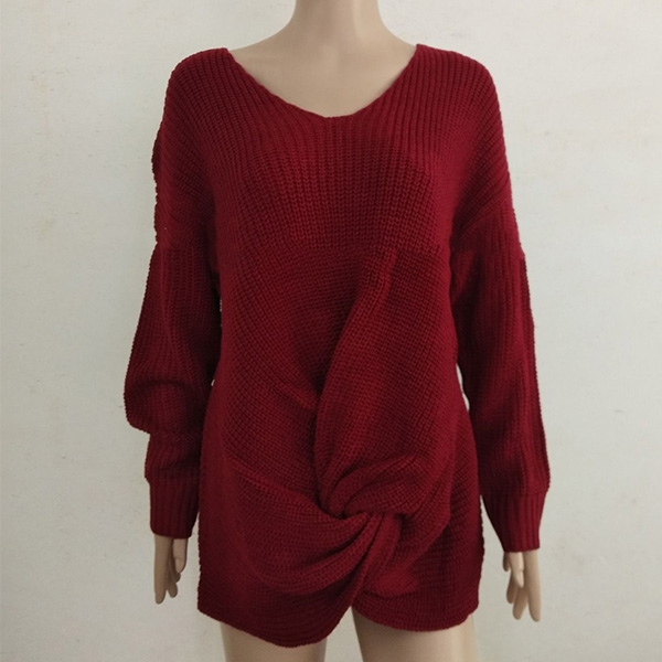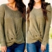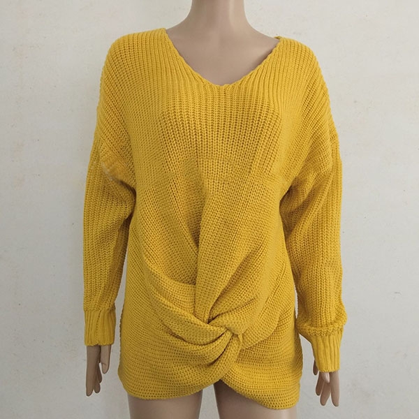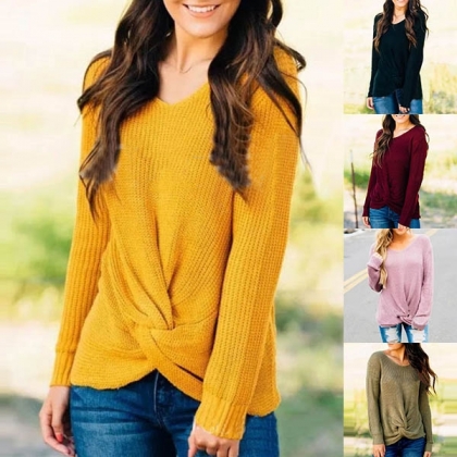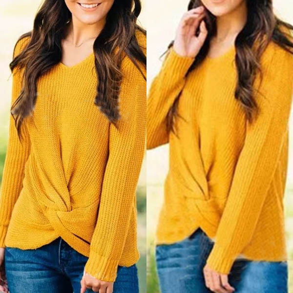 finished with long sleeve and v-neck design,the front twisted design makes this piece look very distinctive.