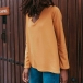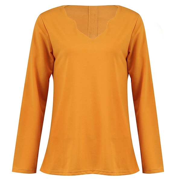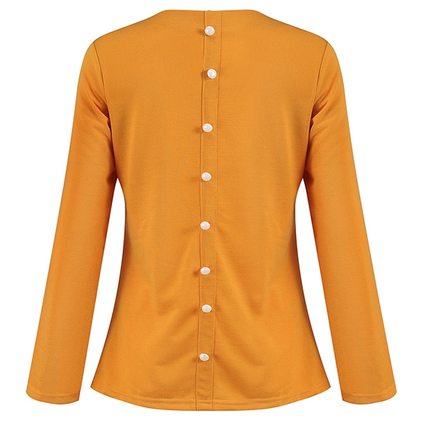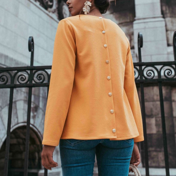 bright yellow tone,the wavy v-neck and back-button design make this piece look so attractive