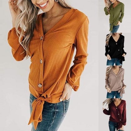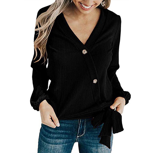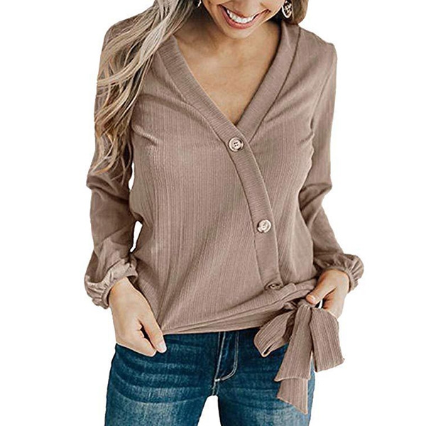 the v-neck,front buttons and lace-up hem design will make this piece look more attractive.