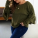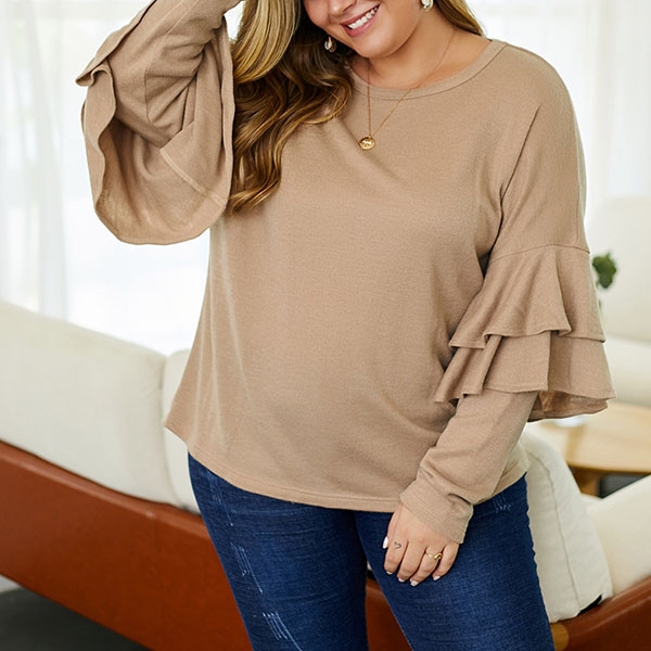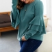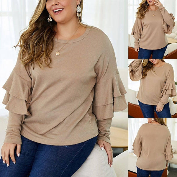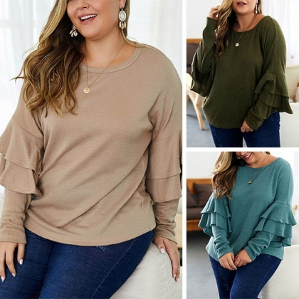 Brighten up your day with this wonderful top. It boasts a solid color,the unique lotus sleeve design makes this piece look so attractive.