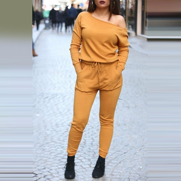 Then you can throw yourself into this jumpsuit.Onlique shoulder, accompanied with solid color,