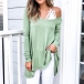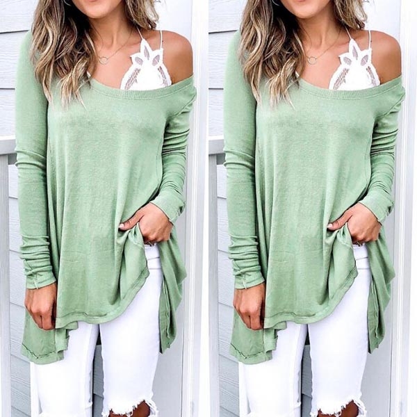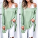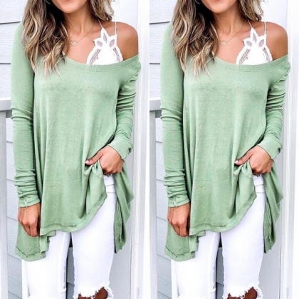 Fashion Solid Color Oblique-shoulder Long Sleeve Irregular Hem Top