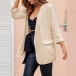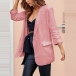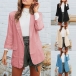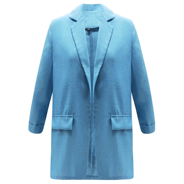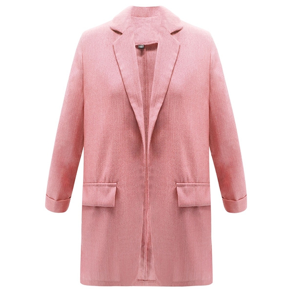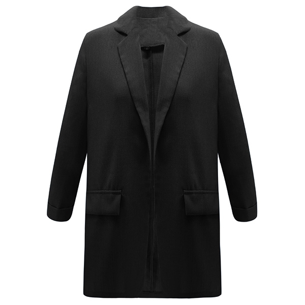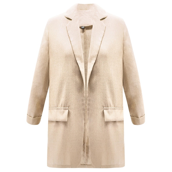 with notched lapels and open front design, it is complete with long sleeves and mock flap pockets for