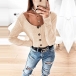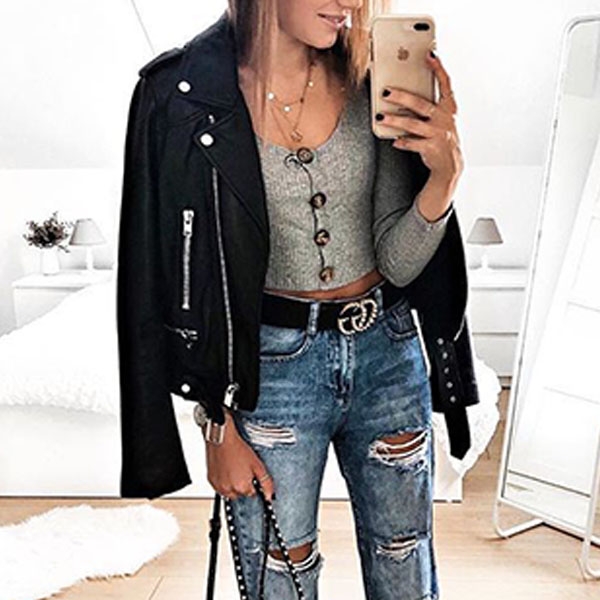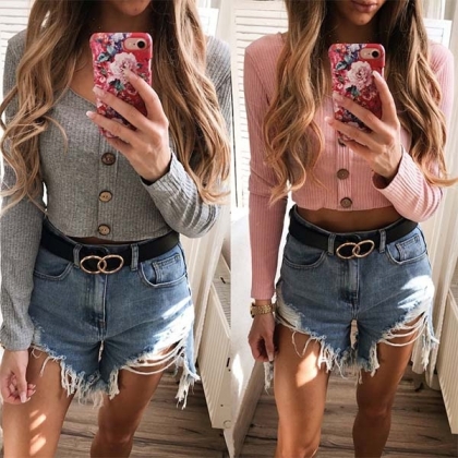 and long sleeves, rendering it a cool counterpart to high-waisted trousers or denim shorts for a modern,