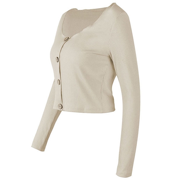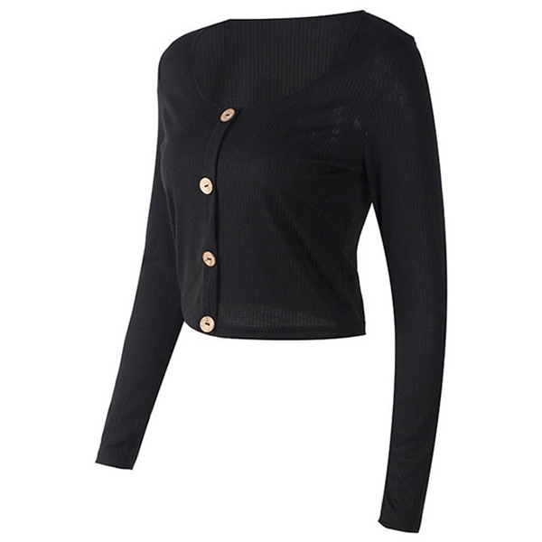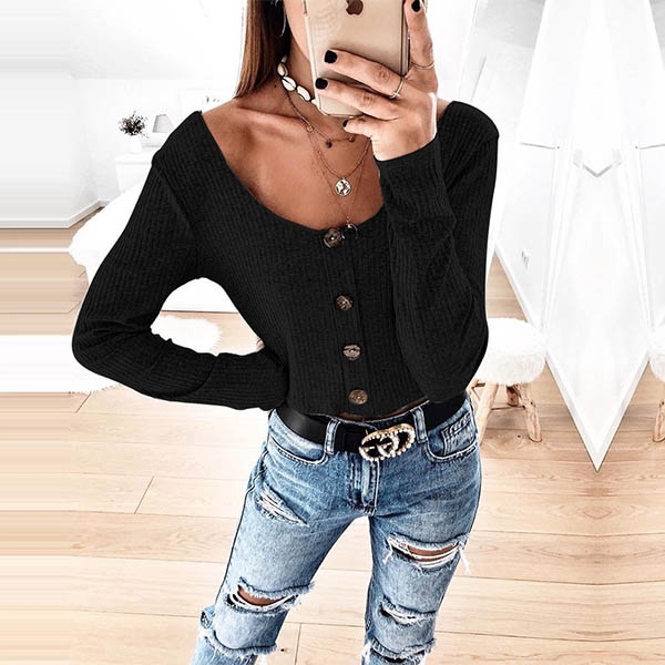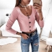 ribbed knit fabric, feature with mock button front design to elevate glamour, come with round neckline