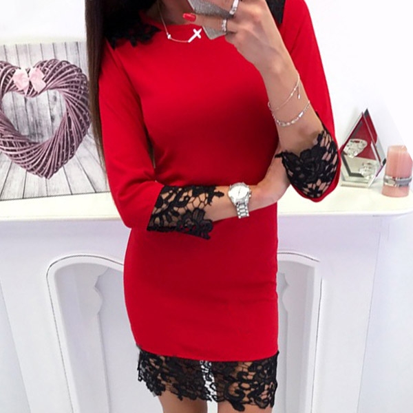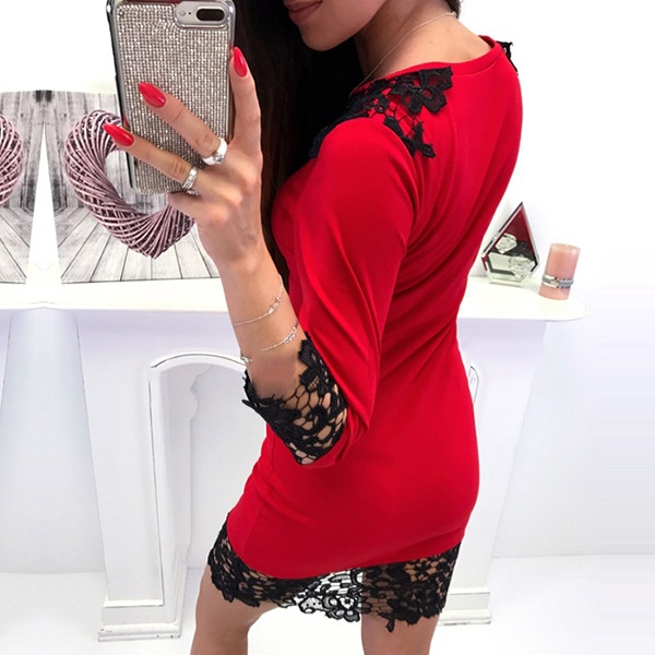 Showcase your sexy and seductive curve through this dress. Solid color style,the lace spliced design