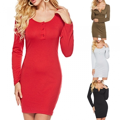 This is a sexy and cool dress.Solid color style,with round-neck,long sleeve and slim fit design,