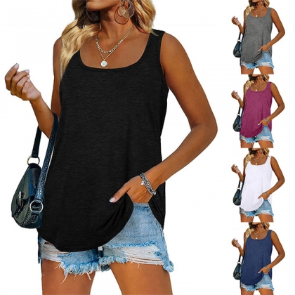 Mode enfärgad lös linne med rund hals