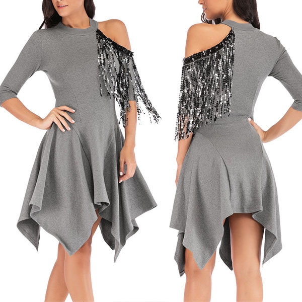 Then this dress would help you achieve it.The dress in solid color style,round-neck, slim fit and off-shoulder design.